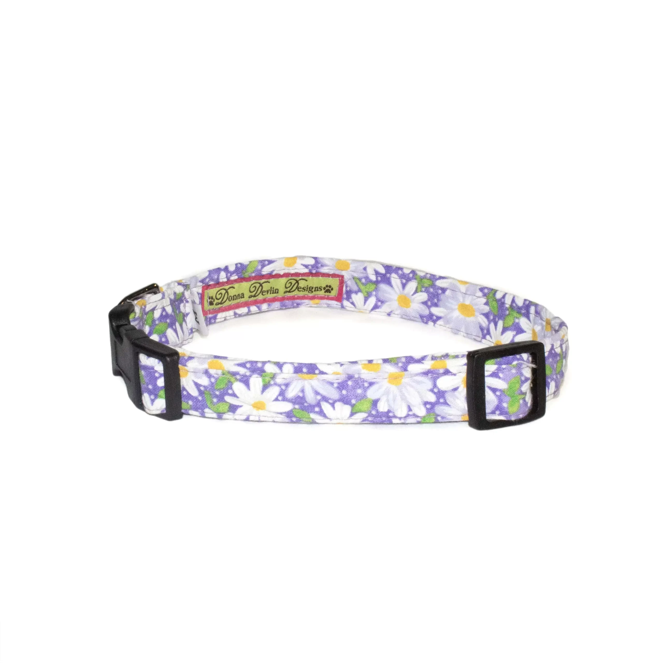 Every Donna Devlin Designs collar is handcrafted with great care from top quality fun, colorful cotton fabric prints. Our collars are reinforced with a heavy nylon webbing insert for incredible strength and durability, yet they are lightweight and comfy. The collars are fully adjustable and fitted with a contoured quick side-release buckle that is easy to use but extremely safe, secure and durable. Each collar is beautifully stitched and finished with a cast nickel plated D-ring.  Extra soft fabric is gentle on your dog’s neck so your pup will feel fabulous and you get to look at something cool for a change.  Don’t forget to consider the matching Step-in Harness, leash and walking vest!