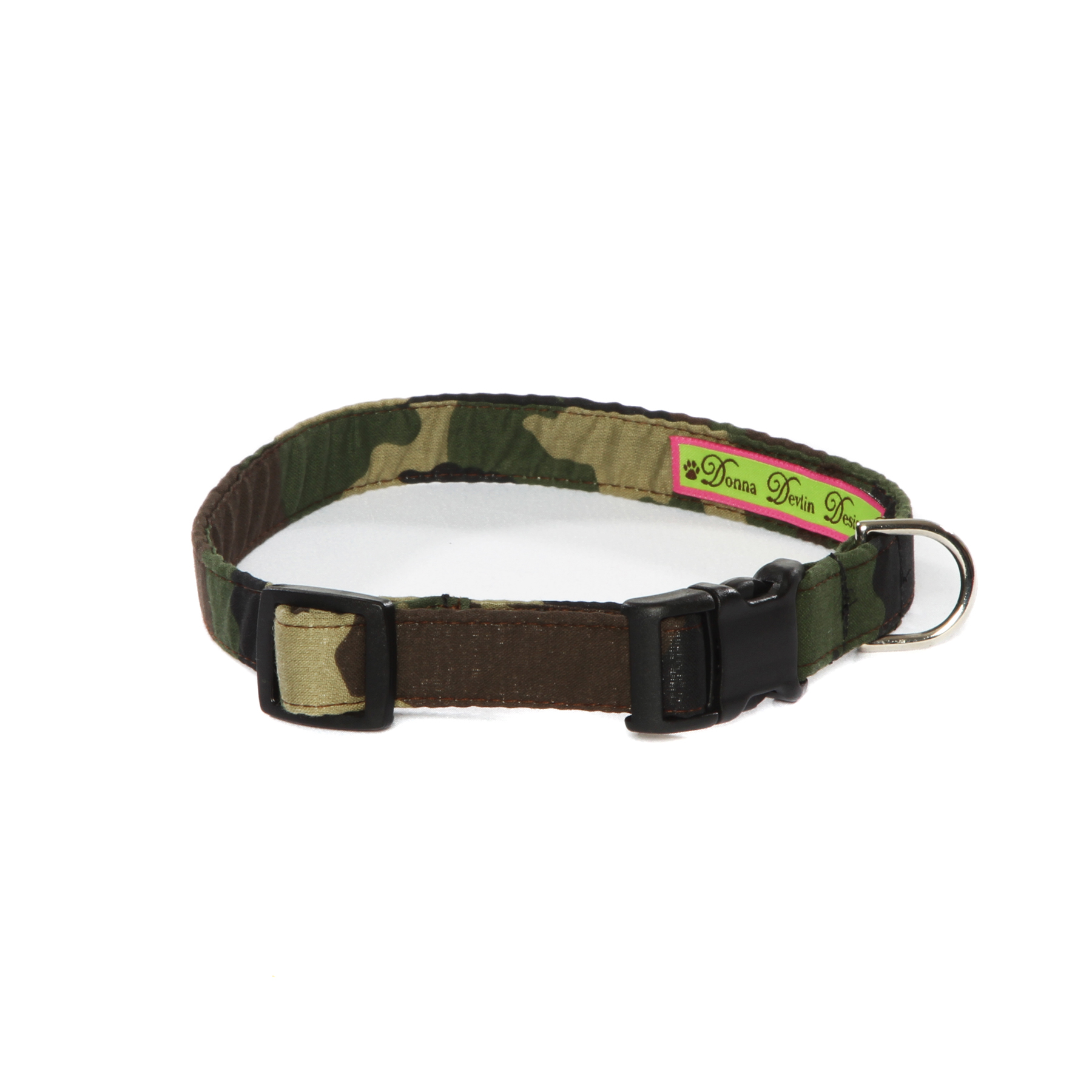Every Donna Devlin Designs collar is handcrafted with great care from top quality fun, colorful cotton fabric prints. Our collars are reinforced with a heavy nylon webbing insert for incredible strength and durability, yet they are lightweight and comfy. The collars are fully adjustable and fitted with a contoured quick side-release buckle that is easy to use but extremely safe, secure and durable. Each collar is beautifully stitched and finished with a cast nickel plated D-ring. Extra soft fabric is gentle on your dog’s neck so your pup will feel fabulous and you get to look at something cool for a change.