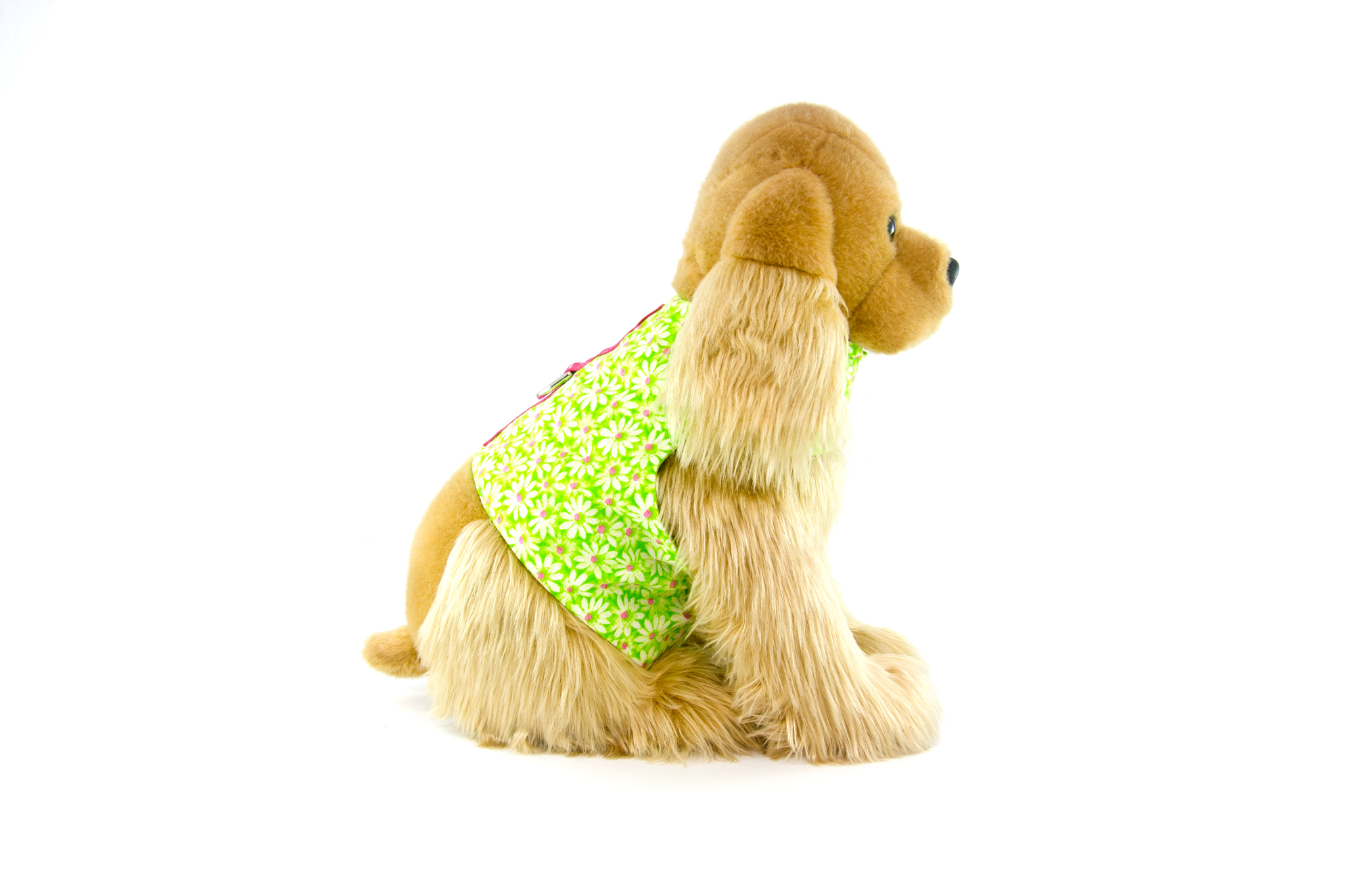 Donna Devlin Designs walking vests are designed to alleviate the pulling and strain on the delicate neck area associated with traditional collars and harnesses by distributing the pull to the strongest part of the dog’s body. Each walking vest closes with adjustable tabs while reinforced stitching ensures safely and security. The sturdy nickel plated D-ring on the back of the walking vest makes it easy to attach your leash and is placed correctly at the mid rear of the harness. This is exactly where the pressure should be.