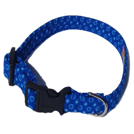 Every Donna Devlin Designs collar is handcrafted with great care from top quality fun, colorful cotton fabric prints. Our collars are reinforced with a heavy nylon webbing insert for incredible strength and durability, yet they are lightweight and comfy. The collars are fully adjustable and fitted with a contoured quick side-release buckle that is easy to use but extremely safe, secure and durable. Each collar is beautifully stitched and finished with a cast nickel plated D-ring. Extra soft fabric is gentle on your dog’s neck so your pup will feel fabulous and you get to look at something cool for a change.
