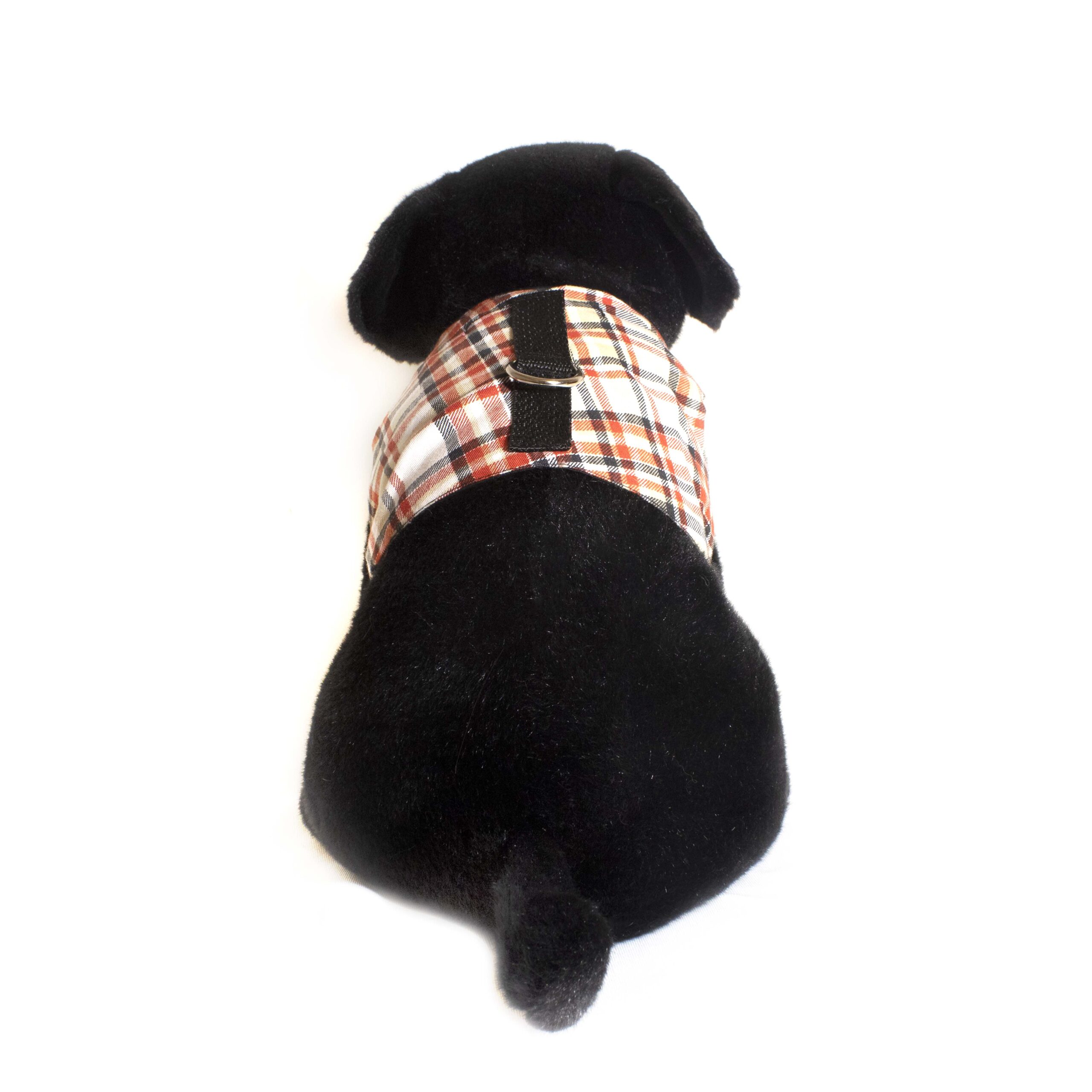 Donna Devlin Designs walking vests are designed to alleviate the pulling and strain on the delicate neck area associated with traditional collars and harnesses by distributing the pull to the strongest part of the dog’s body.  Each walking vest closes with adjustable tabs while reinforced stitching ensures safely and security.  The sturdy nickel plated D-ring on the back of the walking vest makes it easy to attach your leash and is placed correctly at the mid rear of the harness. This is exactly where the pressure should be.